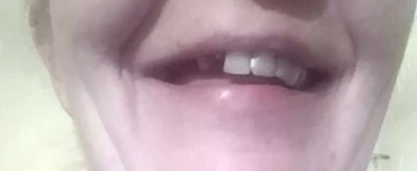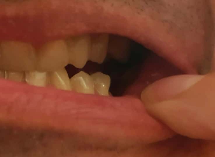 Všimněte si další obrázek. Zákazníkovi chybí zadní zub, stravování je problém nakolik jídlo tlačí na dásně. U zubaře by nahrazení takového zubu stálo od 50 000 Kč.